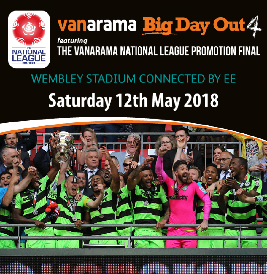 The Vanarama National League has released details of the opportunity for ALL football fans to purchase Early Bird tickets for their Promotion Final on Saturday 12th May 2018 at Wembley Stadium connected by EE.